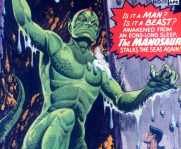 Powers: The Manosaur was an amphibious giant possessing superhuman strength and resistance to deep-sea pressure. He could generate extremes of hot or cold from his body.History: (Sea Devils #28) - The Manosaur belonged to a humanoid reptilian race that roamed the seas 50 MYA. In the present day a embryonic Manosaur was discovered by Professor Rend, but lost at sea in a shipwreck. Rend was obsessed with the Manosaur’s powers of adaptation, and hoped to find a way to bestow those powers on himself. When he was placed in charge of a scientific expedition to find Manosaur fossils he created a Manosaur robot and buried it in the sea floor. With the help of the Sea devils and a deep corer they recovered the robot, which Rend passed off as a genuine specimen. Rend wanted the secret of the Manosaur for himself, and hoped the robot would serve as a red herring until he retrieved the embryo from the shipwreck. He had the robot abduct Sea Devil Judy Walton, and they made there way to the shipwreck. The embryo had matured, and the adult Manosaur smashed its’ robotic duplicate before turning on Rend and Judy. They were saved by the Sea Devils and Man-Fish, and the Sea Devils used underwater grenades to kill the Manosaur.