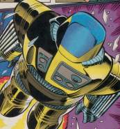 Powers: Marauder utilized a battlesuit that gave him superhuman strength and durability, and could be operated remotely. The suit flew using rocket boosters and used compression tech to shrink the suit for faster travel when operated remotely. The suit's gauntlets fired bullets and explosive shells.