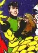 (Action Comics I #381) - The Legion closed shop for the night, with Brainiac 5 staying behind for night duty. Karate Kid walked home, Saturn Girl and Lightning Lad went to catch a 3-D movie and Chemical King offered to give Phantom Girl, Ultra Boy and Matter-Eater Lad a ride home so he could show off his new air-car. Matter-Eater Lad had him drop him off a while away from home because he didn’t want his fellow Legionnaires, who lived in expensive upper level units to see that he lived in the lower level slum with his parents. Matter-Eater Lad got into an argument with his parents because his father Rall spent his entire pension and most of Matter-Eater Lad’s Legion check on his gambling habit, and decided to leave home. He walked back to the Legion Clubhouse where he found Shrinking Violet, who’d replaced Brainiac 5 on night duty when he’d been called away on a mission. She was obviously distraught, and she explained that she’d fallen for Duplicate Boy, and started dating him, but they rarely got to see each other because they lived five million parsecs apart and were often on missions for the Legion or the Heroes of Lallor respectively. They had a date that night, but Duplicate Boy never showed up and Violet felt lonely. Matter-Eater Lad decided to spend his Legion check and ask her out on a date. Princess Projecta offered to relieve Violet of night duty, and help her get snazzed up for her date. Over dinner Matter-Eater Lad told her about the problems in his home life, but she said she couldn’t offer advice and had to figure out how to cope with things himself. After dancing at the Top of the Towers they returned to the Clubhouse, and shared a kiss. Duplicate Lad, who’d missed his date with Vi because he was on a mission, was observing her with his telescopic vision and appeared on Earth, threatening to crush Matter-Eater Lad. Matter-Eater Lad told him that if Violet loved him nothing he did would change that, and beating him up solved absolutely nothing. Duplicate Boy realized he was right and calmed down, and Violet told Duplicate Boy she still loved him, she was just lonely. The next day Matter-Eater Lad agreed to move back home after his father promised to stop gambling.