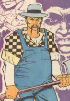 History: (Question I #8) - Spaulding was a conscientious objector who served as a medic in Vietnam, and was wounded twice in the line of duty. He graduated med school and served his time in Hub City, pulling 18-hour days and doing the best he could to bring relief to the unfortunate dwellers of the cesspool of a city. He wanted to maintain a balance to make up for all the casual cruelty he saw in the city, but came to hate humanity, and decided he would have to create a balance of his own. Spaulding was a fan of Gilbert & Sullivan, and he donned the Lord High Executioner mask and took the identity of Mikado. He was aware of many wrongdoers because of the victims that passed through his hospital, and tracked down the villains, giving them fitting deaths while reciting the line from the Mikado "My object all sublime .. . I shall achieve in time - to let the punishment fit the crime." He scalded to death a man who'd scalded his child, and hacked the flesh off the bones of a man who was starving his children. The Question got interested in his year-long serial killing spree, and uncovered his identity. He confronted Spaulding in his apartment, not intending to turn him in, but wishing to understand his motivations. Mikado said his work had to continue, and after hitting Question with a tranq dart said as much as he regretted it he would have to dispose of his rival vigilante. Question made a case for the balance he was creating by his heroics in Hub City, and Mikado decided to spare his life, but took his own, overdosing on a chemical injection.