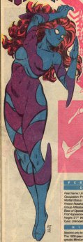 Powers: Mindacer drained psychic energy from others and stored it in her mind. This stored energy could be released as a “brain bolt” that left enemies dazed and powerless. The limit of how much energy she could store and discharge is unknown.History: (Booster Gold #1-4)-The mysterious Mindancer was second in command to the Director in the criminal army the 1000. She took part in the organization’s plans to control Metropolis, and fought with Booster Gold. When the underground headquarters of the 1000 was invaded by Thorn II, her mask was ripped off, revealing a skull-head beneath. She proceeded to flee the scene.