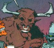 History: (Demon III #1-3, 30 (fb)) - The demon Asteroth tried to usurp the rule of Hell from the triumvirate of Lucifer, Beelzebub and Belial, but failed thanks to Merlin and Etrigan. The bull-beast Morax of Stygia heard of Asteroth's failure, and realizing his resources were spent, raised an army of demons and attacked his castle to wrest control of his dukedom. Asteroth brooded, refusing to accept his defeat or acknowledge the danger he was in. Morax demanded Asteroth face him in open combat, and Asteroth's flunky Lurgo begged him to distract Morax so they could flee the castle. Asteroth tossed Lurgo from his castle window, telling him to confront Morax himself. Lurgo pleaded with Morax, asking if he needed a henchman, but Morax simply crushed him with his mallet. Morax again challenged Asteroth to single combat, and as Asteroth cast a spell that would let him vanish he was caught up in a summoning spell cast by amateur necromancers in Gotham City. Morax then razed Asteroth's castle.