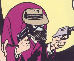 Powers:Number Seven is somewhat skilled with firearms, and he also possesses a gun that shoots the same liquid fire that disfigured him.History: (Police Comics #25)-A soldier serving in WWI was so horribly disfigured by liquid fire that he was unable to be identified. He became known simply as Number Seven. It’s unclear whether or not even Number Seven remembers who he used to be. He spent years in isolation, with books as his only joy in life. He began hoarding rare books, even using criminal means to obtain them. Number Seven usually had others do his dirty work for him; he only left the seclusion of his house on a bungled job. Getting a first edition copy of ‘The Life of Thomas Quince’ proved to be very problematic for Number Seven, as both his flunkeys and other ambitious criminals ended up killing each other and attracting the attention of Plastic Man. Plaz easily tracked down and captured Number Seven, who wasn’t too bothered about going to jail. He was, however, furious that the so-called first edition book was a mere forgery.