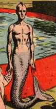 Powers: Nurro was a merman, capable of breathing on land and air. He was a telepath and a competent grappler.History: (Sea Devils #8) - The fish Nurro fell in love with fish princess Serra, and won her heart. He sought to prove his worth to her friends and family even though he was a commoner, and told her he would steal her treasure from a forbidden treasure ship graveyard. Serra made him promise to abandon his foolish endeavor, she preferred his love to him risking his life for trinkets. Nurro soon broke his promise, bound to prove himself, and Serra followed to beg him to get out of danger. They were confronted by Neptune’s Giant, the guardian of the graveyard. He took Serra hostage, and turned Nurro into a merman, an outcast of sea and land. Nurro was captured by humans, and forced to perform in a circus. He begged for freedom, but the circus workers ignored him. One day the Sea Devils came to the circus, and used his telepathy to contact Devil Biff Bailey, whose soft heart couldn’t say no to liberating Nurro. The Devils assured him they’d save Serra, but when they reached the ship graveyard Neptune’s Giant turned each of them into half-human half-fish. The Giant tried to force them into gladiatorial combat for his amusement, but their half-fish minds were snapped into action when a shark, a swordfish, and an octopus imperiled the beloved Sea Devil Judy. The Devils used a floating mine to destroy Neptune’s Giant, turning them and Nurro back to normal, and allowing Nurro to reunite with his love.