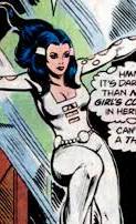 (Legion of Super-Heroes III #14) - The Legion interviewed applicants during their membership drive and had them demonstrate their powers. The Legion Academy all tried out, with Bouncing Boy on hand to cheer them on. Mentalla applied for membership, saying she’d be a valuable addition because her powers were similar to Saturn Girl, although her telepathy was used to control minds instead of reading them. Comet Queen, Magnetic Kid and Tellus all made it to the second round, and were given a trial by fire, joining the Legion on a mission to find out why the bridges and drainage systems of the California Coastal District were breaking down. Brainiac 5 led the mission, and had Mon-El team up with Magnetic Kid to use their powers to raise the newly sunken sections of California. Comet Queen rescued civilians in danger of drowning and Tellus picked up the thought-patterns of someone with sabotage on their mind. At Legion hq Energy Boy demonstrated he ability to create nuclo-globes when Polar Boy interrupted him by freezing his nuclo-globe and hands to show the Legion that he’d gotten much better at controlling his powers. He told the Legion he’d dissolved the Subs, and asked that they waive their old rule that new applicants had to be under 18 to consider him. Tellus led his teammates to the northern cost, where he sensed the thought-patterns coming from. The coast buckled and Mon-El went to investigate, finding Dev-Em on the scene. Dev-Em was now working for the U.P.’s Counter-Intelligence Corps and was also investigating the damage being done to California. Dev-Em made it very clear he was not impressed with the new would-be Legionnaires, and said the Legion would be better off if they offered him membership again. Dev-Em said the Corps had learned that the Dark Circle left behind a few stragglers on Earth to commit acts of sabotage, and Tellus tracked down the saboteur, an Ontiir clone. The clone sat in a weapon-chair and was set off another destructive device that caused a tidal wave. Mon-El used his heat vision to evaporate the tidal wave while his teammates tried to pierce the clone’s forcefield. Quislet, an adventurer from a microscopic dimension flying in a miniatures Trans-D Vessel, joined the fray in an attempt to impress the Legion. Quislet could animate inanimate matter, and took control of the clone’s weapon-chair, using it to defeat him. Quislet returned to his Vessel, and the weapon-chair crumbled to dust, as was usually the case for any matter Quislet possessed. The Legion inducted Magnetic Kid, Polar Boy, Quislet and Tellus as new members. Saturn Girl said she had a recruit with an excellent reason to join the team, Sensor Girl. She wouldn’t reveal anything about Sensor Girl, but asked the Legion to trust her, much like they trusted her telepathy when she recommended Element Lad as a member, and the Legion welcomed Sensor Girl to their ranks.