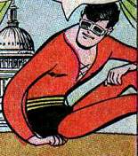 History: (Plastic Man I #7 (fb)) - The 1940s crimefighter settled down, got married, and had a son, “Eel” O’Brien, Jr. Plas loved his boy, but wished he was abnormal like he was. One day the young boy guzzled down acid from a flask that Plas kept as a memento of his crimefighting career. The acid was from the vat of chemicals that gave the original Plas his powers, so his son now had stretchable abilities, and Plas was overjoyed that he now had a weird son. Plastic Man retired when he got too old for crimefighting, and his son became the new Plastic Man.