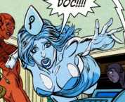 (Doom Patrol V #5, 6) - Tina sent Mercury, Tin and Magnus to the department store to get her birthday gifts. The three took a cab, and Mercury continued to berate Tin for crashing their car. Magnus made it clear that he thought the idea of celebrating a birthday for a robot was ridiculous. He confided in Tin that Tina’s interest in him was only her mimicking what she thought of as human love from the media she’d seen. The Clique, robotic mannequins who wanted to rule the world, were causing a disturbance at the department store, and the Metal Men went into action. Betty, the Clique’s leader, ripped off Tin’s head. The Clique forced Magnus to pick out clothes for them, and he managed to call the rest of the Metal Men, who were busy redecorating the house on Tina’s orders, but it took them a bit to arrive because Tina was so excited to get a call from Magnus that she neglected to ask where he was. Tina was furious seeing Magnus consorting with other female robots, and attacked them. Tina wondered if her caricature of female behavior might be part of Magnus’ programming. The Metal Men combined to form a wood-chipper that ground the Clique to dust, and then wondered about the implications of destroying other artificial life forms. Magnus talked to the military to convince them that Prof. Rumpus, creator of the Clique, was just a fan of his, and not a terrorist.