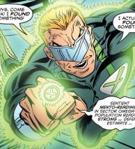 (JLA #108) - The Crime Syndicate was bored with their domination of the world and looked for ways to make life exciting. Power Ring located the planet Qward, home of Wesaponers and Thunderers and offered them up as sport. The Crime Syndicate invaded Qward and was having a grand time until Krona's reality-0destroying wave wiped out the entire anti-matter universe. The JLA undid the damage Krona caused, and the anti-matter universe was reconstructed, but with some key differences. The Syndicate never invaded Qward, and Power Ring was wiped from existence and replaced by an African American man who became the new Power Ring.Comments: Created by Grant Morrison & Frank Quitely.