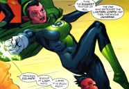 (Green Lantern IV #25) - The Sinestro Corps War raged on Earth, and while Iolande, the GLC and an army of superheroes battled the Corps the Anti-Monitor prepared to unleash an anti-matter wave to destroy Earth. With Earth’s destruction, the entire 52 would fall, and he would once again rule all that was. The GLC ruptured the heart of Anti-Monitor’s Warworld, the Sinestro Corps central power battery, and created a shield around Warworld and the Monitor. The ensuing blast nearly destroyed the Anti-Monitor, and he was finished off by Superman-Prime, who betrayed him for having destroyed his home, Earth-Prime. GL Hal Jordan defeated Sinestro in personal combat, and the Sinestro Corps, lacking any leadership, fled Earth. The heroes rejoiced and began rebuilding the damage the Sinestro Corps did.