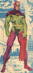 Powers: Quakemaster used a power-charged jackhammer of his own design. It projected pulsing waves of energy capable of shattering concrete and simulating a minor earthquake. The jackhammer’s energy could also smash the bones of an opponent. Quakemaster was a poor fighter, but quite strong. For a brief time Quakemaster wore a battlesuit that boosted his strength and resistance to damage to superhuman levels.