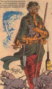 History: (Detective Comics #585) - Flannegan was a Gotham City Sanitation Department ratcatcher who somehow learned to train rats to follow his commands. He killed a man in a bar brawl and was given ten years in prison. Following his release he began kidnapping people involved with his trial, including the judge, a warden and a witness. For five years he kept his victims hostage in Gotham’s sewers. He lived there as well, and spent all his time training an army of rats. Judge Hogan escaped the sewer, but was quickly followed by the Ratcatcher. Once the Judge reached the streets he was killed by Ratcatcher’s trained rats. Batman set a fire in the sewers that consumed Ratcatcher's the army of rats, and captured him before he could kill his remaining prisoners.