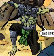 History: (Mortal Kombat X #19 (fb)) - Shang Tsung organized a Mortal Kombat tournament, and Shao Kahn wanted to know what his agenda was. He ordered his spy Reptile to enter the tournament, learn what he could, and ensure a victory for Outworld. Reptile fell in kombat, bested by Johnny Cage. Shao Kahn ordered Reptile's execution, but his general Kotal Kahn staid his hand, convincing him Reptile was far more valuable as a spy than a warrior.