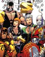 (Secret Six III #30, Doom Patrol V #19) - Scandal learned that Bane had never been on a proper date in his life, so she asked Liana K to hook him up with one of the dancers at Superior’s Gentleman’s Club. Bane was extremely uncomfortable, but agreed nonetheless. The dancers were wild for Bane, and his date Spencer liked him even though he had no idea how to go about dating, presenting her with flowers and telling her they were bargaining tokens in hopes off him mating with her. When one of the regulars harassed Spencer, asking her for a dance even though she was off the clock, Bane shattered his face, and asked if etiquitte demanded he break his spine. Liana knew the cops would come, and hurried Bane and Scandal away from her club, but Spencer asked bane to please call her. The Secret Six were hired by the newly formed criminal organization C.R.U.S.H., run by Eric Fine, the grandson of one of the founders of the 100. They wanted the sovereign nation of Oolong Island as their new headquarters, and told the Secret Six to dispose of Oolong’s protectors the Doom patrol. The Six only agreed after Jeanette and Scandal made it clear they wouldn’t kill any civilians, but Deadshot thought they were acting like babies. The Six engaged the Doom patrol in combat, but Eric decided to double-cross them, and sent suicide bombers to ignite Oolong’s dormant volcano. The DP wanted to call off the fight, but Bane insisted that the disaster meant nothing. DP member Elasti-Woman diverted the lava, and Oolong’s president uncloaked C.R.U.S.H.’s helicopter, which was observing the proceedings. C.R.U.S.H. fled, and the Six realized they wouldn’t be paid for the job, so the conflict ended, and the Six peacefully left Oolong, but Catman admitted he was itching to tussle with the DP again.
