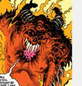 Powers: As a demon Shathan could grow to enormous size, and possessed vast superhuman strength and durability. In his home of Hell he could manipulate souls and bend reality.