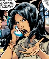(Starfire II #3, 4) - Sheriff Gomez called in Starfire when a cruise ship crashed into the docks. They investigated, and found nothing but dead crew members. Gomez told Starfire to wait for her at the Blue Monkey diner, if something dangerous was aboard she'd feel responsible if Starfire got hurt, despite her insistence that she could take care of herself. Gomez found only one survivor, a boy named Grant, who said that he'd hid when the slaughter happened, and whatever killed everyone else jumped off the ship before it crashed. Gomez had to halt her investigation when a subterranean Chida Monster rampaged through town. Starfire and her new hero friend Atlee defeated the monster, and Gomez started freaking out. Within days Key West had seen more metahuman activity than it ever had in the entirety of her career. Starfire's solution was to give Gomez a big hug, which the sheriff wasn't keen on. Gomez asked the heroes if they could at least try to be low-key. Stella visited Starfire for a pool party and dove underwater to start practicing karate. Sol said she had control issues, and hated showing weakness or having things beyond her control, and cautioned Starfire to not repeat that.