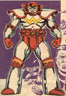Powers: Despite his impressive battle armor, the only power it seems to give him his superhuman strength and invulnerability. Shockwave has little in the way of tactical fighting skills, mainly relying on brute force.History: (Blue Devil #2, 3)-Shockwave enjoyed a brief career as a strongarm man for organized crime on the West Coast. He invaded S.T.A.R. laboratories on a mission from Metallo, but was defeated by the Blue Devil.