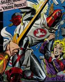 Powers: The Silent Knight was a trained swordsman, hand-to-hand combatant and horseback rider. He was also a natural born leader and very charismatic.History: Brian Kent was left an orphan when his royal father Sir Edwin was slain and usurped by Sir Oswald Bane. Although Brian Kent was the rightful ruler of his father's kingdom, Bane put him in training as a knight to keep the lad out of his hair. One day Kent discovered a suit of armor in the Forest Perilous, and donned it to battle against the forces of corruption in his kingdom. He became the Silent Knight, never speaking lest someone discover his secret identity. The Silent Knight had a long and prosperous career, and fought alongside King Arthur on occasion.