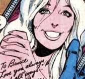 (Detective Comics I #475, 476) - Bruce Wayne had always kept his affairs short to protect his secret identity, but decided he wanted to indulge himself and continue things with Silver. As Batman he surprised her in her apartment, and asked if she had something to tell him. He was confused when she said she didn’t know what he was talking about and asked him to be on his way, saying she had a date with her boyfriend. Silver tried to convince herself that Bruce might not be Batman, and worried that if he knew she’d figured out his secret that would be the end of their relationship. Bruce phoned Silver and they decided to postpone their date. Silver decided she needed tome time to think and needed to get out of Gotham City. She drove to the west coast when her car broke down. Boss Thorne, haunted by the ghost of Hugo Strange, was also fleeing Gotham, and saw Silver on the side of the road. Silver asked him for a ride and jumped in. Silver kept waffling about confronting Bruce as she had confronted every other difficult situation in her life, and wondered if Bruce had a good reason for not sharing his secrets with her. A news report about Batman came on the radio, and Thorne bashed the Caped Crusader, saying he was responsible for all Gotham’s problems. Silver shot back that Batman kept the city safe from corrupt people like Thorne, who’d been grafting off the city for years. Thorne said he demanded respect, and when Silver refused to back down he ordered her out of his car. Silver chartered a plane back to Gotham and witnessed Batman fighting Joker across the city’s rooftops. Joker plunged into Gotham’s river and Silver called out to Batman. Silver told Batman she loved him, but after seeing him fight with the Joker she realized she’d never be able to cope with the madness in his life and never knowing when his luck would run out. She shared a kiss with Batman before breaking down in tears and breaking up with him, asking Batman not to try and contact her.