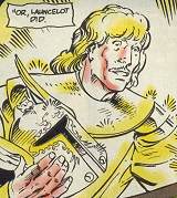 (Demon III #20 (fb)) - King Arthur sent Sir Lancelot and Sir Percival on the Gail Quest to find the Holy Grail Jesus used during the Last Supper. After many adventures they found the Grail, and when Lancelot held it aloft he ascended to Heaven.