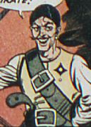History: (Green Lantern I #27) - The Sky Pirate took up a life of crime to rule the skies as a modern buccaneer. He and his pirate gang boarded a penthouse roof to rob the socialites present, but Green Lantern and his sidekick Doiby Dickles spotted his zeppelin and investigated. Sky Pirate knocked them out with sleeping gas, and wanting to have some fun disposing of them he tied them to the hands of a clocktower. The heroes freed themselves, but were unable to prevent Sky Pirate from kidnapping millionaire skinflint Jasper. GL flew to his zeppelin, so Sky Pirate tossed Jasper overboard, forcing the mysteryman to save him and let them get away. GL found his mountaintop headquarters, and defeated his men. Sky Pirate took the mountain elevator to escape, but GL used his power ring to reverse it's direction, sending him to the base of the mountain. Sky Pirate revealed himself as a terraphobe, terrified of being on the ground, and he huddled into a mass, telling GL he was defeated.