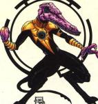Powers: Snap Trap fed on spines and used his hypnotic eyes to lure in his prey. His feeding method was to crush his prey's skull in his crocodilian jaws and extract the spine with his tongue. Somehow his prey was always left alive if in horrifying agony. His primary weapon was his power ring, which was virtually identical to the power rings used by the Green Lantern Corps, except that it only utilized the yellow range of the spectrum, tapping into the emotional energy of fear. Snap’s power ring was capable of doing almost anything he could imagine. Examples of its’ powers include flight, phasing, creating giant objects formed of energy, and force fields. Snap’s power ring could also counter the abilities of any Green Lantern’s power ring.History: (Green Lantern: Sinestro Corps Special #1) - Snap Trap was chosen to be a member of the Sinestro Corps for his ability to instill great fear. Sinestro gathered Snap Trap and the Sinestro Corps on Qward. Sinestro laid out their mission of using fear to make the chaos of the universe bend to their will, and to replace it with law and order. Their first step was to burn anyone that would oppose their plan, so they had to destroy the Green Lantern Corps. They brought Kyle Rayner to Qward and stripped him of the Ion entity. Sinestro made Kyle feel fear, and infected him with the Parallax entity, which he then presented to his guardian, the Anti-Monitor.