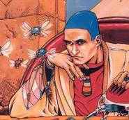 (Egypt #6, 7) - Khum investigated the underworld and was chased off by Seth and Soter. Isis opened a gate to save him, but when Osiris and Isis had a disagreement Osiris left, leaving their dwelling vulnerable to Seth. Seth created a sandstorm that killed Nephthys, and Isis' handmaiden opened the Eye of Wedget to help them escape to a temple where Khum saw a colossal statue of Vincent Me in full pharaohnic garb. Khum and the handmaiden fell into a pit trap, and found them at the mercy of Soter, who revealed that he was the last disciple of the fathers, who used advanced technology to bring the Egyptian deities and the underworld to life. They used one of Khum's previous incarnations, who was mummified thousands of years ago, as a template, and the fathers intended for ancient Egypt to be completely static. Soter had tried to kill and recreate the gods with himself as a template, and had sown discord with them so they'd meet in a final battle, leveling the playing field for his new pantheon. With that Khum and the handmaiden were sent away from the temple. Khum reasoned that the gods were like him, in that they huffed and puffed, but rarely accomplished anything. He talked to Seth, Nephthys , Isis, and Osiris, and convinced them to work together for once to achieve something. He got drunk at a bar while the gods destroyed Soter's temple and destroyed him, freeing Egypt from its static nature.