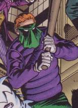 (Green Lantern I #28) - Crusher survived his fall, and took up the masked identity of Sportsmaster, using gimmicked and weaponized sporting equipment. Alan Scott and Doiby Dickles covered Spiffany's record breaking sale of the moon pearls when a boomerang flew into the store and snatched the pearls from the merchant. Outside Alan saw the Sportsmaster was responsible, and he used a tennis racquet to lob a grenade at Alan. Alan woke up in the hospital, but knew he had to go into action, so he had Doiby take his place in bed while he powered up as Green Lantern. Spokesmodel Leslie West presented a gold sports trophy at a local event, and Sportsmaster made the scene on flying skis, snatching up Leslie and the trophy, which he believed he deserved. GL pursued him, and Sportsmaster flung Leslie to the ground to slow him down. He regretted losing possession of his trophy, but GL was forced to break off pursuit to save the woman. He recognized the Sportsmaster's moves, and believed him to be Crusher Crock, who he thought dead. He had the police dig up Crock's grave, and they found the barely breathing Doiby, who Sportsmaster had kidnapped and buried alive. Sportsmaster kidnapped Leslie, and demanded GL play him for possession of the trophy with Leslie's life on the line. They met at Lake Victory and during their struggle on a colossal statue Sportsmaster fell into the waters below. a search failed to find his body.