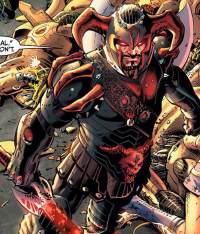 (Earth 2 #8) - Steppenwolf traveled to the nation of Dherain, seeking sanctuary. He was stranded on Earth after Batman shut down Darkseid’s boom tubes, and Dherain’s King Marov had aided Steppenwolf in the past, betraying humanity to assist Darkseid’s invasion in exchange for Apokoliptian technology. Marov had negotiated a peace treaty with the World Army in which Dherain was cut off from the rest of the world, but he would not be put on trial for war crimes. Steppenwolf and Marov acted cordially towards one another, but Steppenwolf revealed that he knew Marov was trying to lull him into a false sense of security and planned on betraying him. Steppenwolf’s daughter fury was the last of his troops still loyal to him, and she’d learned Marov’s army had orders to kill Steppenwolf when ordered. Marov admitted he planned on taking whatever new Apokoliptian tech Steppenwolf might have to offer and turning him in to the world Army. His betrayal didn’t sting, since Steppenwolf only came to Dherain because he wanted to be the nation’s new monarch. Fury tore through Dherain’s army while Steppenwolf engaged Marov in combat. Marov had an exoskeleton based on Parademon schematics, but it did him little good in fierce fighting, and Steppenwolf killed him. Steppenwolf presented the people of Dherain with Morov’s head, saying that although Marov was a worthy leader and kept the wolves from the nation’s door, he would no longer be able to protect them. The people accepted Steppenwolf as their new ruler, and Steppenwolf commissioned a memorial statue of Marov to make himself seem more like a worthy successor and less like a dictator. Steppenwolf confided in fury that Dherain was only the beginning, he still wanted to rule the entire world for himself.
