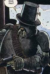 History: (Jonah Hex: Riders of the Worm and Such #1) - <Texas Panhandle, 1870s> Stove Belly Jack was a bounty hunter from Kansas who came down to Texas to collect a bounty on Jonah Hex, who’d shot some bullies and burned down a town. Hex laid low with Tex Smith, who he’d served with in the Civil War, and his wife Alice. Stove Belly Jack and his crew learned Hex was staying on their farm, and tortured Alice to make her reveal his location. Tex couldn’t stand to see his wife being hurt, and told them Hex was in their barn, but the bounty hunters still killed Alice and fatally injured Tex. Jack and some of his men burst into the barn, with Jack bragging that he was going to keep Hex’s head as a souvenir to impress the ladies. Hex was hiding in a pile of manure and got the jump on them, shooting them dead. Hex tied one of their corpses to two horses, and let them out of the stable, drawing the fire of the rest of Jack’s crew. While they were shooting at the decoy Hex killed them all. Hex staid with Tex in his final moments and gave him a proper burial.
