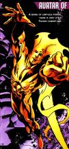 Powers: Takion was an avatar of the Source, and his body was composed of the same lifestuff that composed it. He was omniscient, and could manipulate any form of energy. Takion was a telepath who could possess the minds of others. Takion did not age, and possessed vast superhuman strength and durability.History: Joshua Saunders was a blind psychologist born without a destiny, having no role to play in the cosmic battle of good versus evil enacted by the New Gods. Highfather took Saunders, and bound him to the Source, the fundament of all reality. Saunders was transformed into the godlike Takion, and served as an avatar of the Source, and an ally of the New Gods.