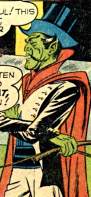 History: (Challengers of the Unknown #6) - The Challengers of the Unknown received an SOS from a sinking vessel, but when they arrived on the scene the ship disappeared, turning out to be an illusion, and a gravity-ray took the Challengers to a spaceship. They were locked in cages by Tartan and the Stupendous Interplanetary Circus, who told them they were to be star performers, whether they wished it or not. In front of an alien crowd the Challs were dumped into a tank of water and forced to battle Quadro, the Four-Finned Demon of the Deep. Afterwards Tartan and his men loaded the Challs into their cages and flew to the next performance in their galaxy-spanning tour. They landed at the meteor arena, and the opening act was the round men of Zaka and the bird-men of Taka. The Taka had hoops around their neck, and had to catch the Zaka, who were fired from a giant sling. The Challs learned they were being forced to perform against their will too, and teamed up to attack the circus guards, escape the arena, and fly off in the circus' spaceship. Tartan and his guards pursued them in warships, and the Challs, knowing they'd be cut to ribbons, landed on an asteroid. The asteroid's gravity gave them superhuman strength, so they ripped up crystal boulders to ward off the guards before hurling projectiles at the warships, disabling them. Tartan surrendered, and the Challs took him back to meteor arena, where the law arrested him for pressing sentient beings into service.