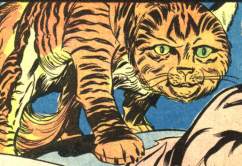Powers: Teekl was a cat familiar with vicious claws and fangs. She was mentally bonded to her master Klarion, and could assume a humanoid form or a large and savage bestial form at his will.