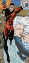 (Titans I #21) - The press asked for Tempest's take on Cheshire's hearing for the destruction of Quarac. As an Atlantean that'd nearly saw his own people destroyed he hoped she'd get the harshest possible sentence. This comment didn't sit well with Arsenal, who still had feelings for the mother of his daughter. Tempest and the Titans saved Liam Harper from the Hangmen, who were trying to abduct Liam in order to keep Cheshire quiet at her trial. Quaraqi survivors wanted to assassinate Cheshire before her trial, so Arsenal convinced Tempest and the Titans to go to the Netherlands to protect Cheshire.
