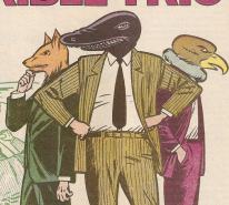History: (Detective Comics I #253) - The Terrible Trio were a group of criminal masterminds and inventors, each having a specialty. Fox's inventions and schemes were based on land, Shark's on water, and Vulture's on sky, and they wore rubber masks of the animals they represented. Commissioner Gordon, Batman and Robin responded when an earthquake shook the Gotham bank, and the culprits were the Terrible Trio, who used a boring machine to tunnel underneath the bank. The Dynamic Duo pursued them into their getaway tunnel, but they set off a bomb, causing a cave-in that blocked the heroes' path. Vulture of the Trio next robbed the Freedom Plane containing historical treasures, and parachuted to safety. Batman and Robin saw Vulture ready to hop into the tunneling machine, so they destroyed the storefront of a bottling plant, making the sound of gunfire, and scaring the Trio away. Using the Batmobile's sonic range tracker they followed the machine to the Trio's lighthouse headquarters. The S.S. Cairo was scheduled to pass by the lighthouse on its way to delivering treasures from Cairo, and Batman deduced that was the next place the Trio would strike, and asked for Gordon's help setting up a trap. Trio member Shark used his pilot fish ship to latch onto the Cairo, opening a hole in it for the Trio to enter and steal the goods within. They brought their treasure back to their hideout, but Batman and Robin had disguised themselves as mummies, and after ripping off their wrappings they made short work of the Trio.
