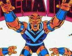 (R.E.B.E.L.S. #1-4) - The Omega Men continued to rack up warrants in the aftermath of the Rann-Thanagar War, and they visited Lunestus, where Tigorr had black-market contacts. Before making his rendezvous he saw L.E.G.I.O.N. droids destroy the planet's city hall, and fled back to the Omega Men ship. They flew off when Silica, the computer controlling the droids, announced that all L.E.G.I.O.N. clients were now property of that organization. A L.E.G.I.O.N. ship fired at the Omega Men, and they escaped by entering hyperspace. They knew even Vril Dox wasn't that nasty, so L.E.G.I.O.N. must be under new management. They went to the Rann Nebula, but the L.E.G.I.O.N. were still nearby. Vril Dox approached them for their aid in helping him reclaim L.E.G.I.O.N. Elu was a living cosmic storm, and he asked for his help disabling Silica, but the Omega Men refused, not forgetting their bad blood with Vril. Vril alerted L.E.G.I.O.N. to their presence and told them to run. They snuck onto Maltus, and Erg destroyed Silica. They planned on taking over L.E.G.I.O.N. for themselves to destroy the Spider Guild, but found that Silica had been possessed by a Starro, and were confronted by Astrild Storm-Daughter, another Starro slave. She proved too powerful for them, so they fled into the streets, only to be trapped inside a media center by Starro slaves. They sent out a SOS, which Vril and his newly formed R.E.B.E.L.S. received, but Vril chose not to help them, assuming they were as good as dead. The Omega Men were teleported to safety by the Psions, who showed them Starro had opened up a subspace rift in the Dominator controlled Xylon expanse, releasing a fleet of warships and the powerful slaves known as the High Vanguard.