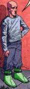 Powers: Ford wore the boots of a M80 battle suit that gave him the power of flight. The boots worked through jet propulsion that could also be used as an offensive weapon.History: (Fraction #1, 2) - Trent made friends with fellow bad seeds Mike, Pete and Ford at Liberty High and the friends got their kicks skirting around the law. As adults the friends graduated into robbery and other crimes, but their fun ended when Ford was caught by the police and sent to jail. Life went downhill for Trent after his wife Janey left him and took their son Elvis with her. When Ford was released from prison, Trent, Mike and Pete threw him a welcome back party at a dance club. After a few drinks the friends decided to relive past glories and break into a storage locker. They discovered an experimental M80 battle suit. Each man took a piece of the armor for his own, Trent ended up with the suit's boots. Trent was behind on child support payments, and his friends all had their own money issues, so they used their new toys to return to a life of crime, robbing the Kwik-Cash check cashing store. They were caught in the act by the proprietor, and Mike almost used his M80 gauntlets to kill the man before Trent pushed him out of the way. The friends took the money and ran. On his own Trent had an enjoyable flight around Philly before he accidentally knocked a car and it's driver into the river. Trent thought fast and saved the driver from drowning.