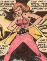 History: (Action Comics I #378) - Criminals Uli Algor and Sunburst came up with a plot to infiltrate the Legion of Super-Heroes, and they kidnapped Legionnaire Shadow Lass, with Uli impersonating her and using a device to mimic her powers. Mon-El called a meeting of the LSH consisting of Dream Girl, “Shadow Lass”, Element Lad and Lightning Lad. The Legion computer alerted the team that one of them was an impostor, but before it could reveal who it was blown up through sabotage. Before the team could determine who the impostor was an alert went out that the criminal Sunburst was robbing the Metropolis Mint. When confronted Sunburst blasted the team with solar energy, knocking Mon-El for a loop. Lightning Lad and Element Lad both targeted the criminal with their powers, but missed, striking the mint and cracking it open. Shadow Lass blinded Sunburst with her shadow casting, allowing the revived Mon-El to knock out the criminal with one punch. The team started arguing about who was the impostor, with Mon-El being suspected because Sunburst’s powers had harmed him, but he replied that he hadn’t taken his daily serum that gave him immunity to lead and red solar energy. Accusals fell on Element Lad and Lightning lad for striking the mint instead of Sunburst, but Mon-El told the team to stop arguing and pulled off “Shadow Lass’” mask, revealing her as Uli Algor. Mon-El said Sunburst’s powers would have made the real Shadow Lass powerless, and Uli confessed, saying she’d taken Shadow Lass’ place and conspired with Sunburst, hoping that by defeating him she’d prove herself as a genuine Legionnaire. She then intended to steal all of the Legion’s secrets and help her partner in crime escape prison. Uli led the LSH to Shadow Lass, who was momentarily jealous that Mon-El could have mistaken someone else for her, but he immediately reassured her that the imposter didn’t hold a candle to her.