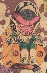 Powers:Ultimate Man possesses superhuman intellect, telepathy, and the ability to transport others through time and space. He can fire mental energy blasts that can simulate disasters, cause explosions and form land masses. Ultimate Man is reliant on a hover-chair that he operates by mental command to move because his body is completely atrophied.History: (Superman Special #1)-An unnamed scientist set up a lab in the Sierra Mountains to devote his life to research that would end human suffering. Inspired by Superman II, he decided to create a race of evolutionary advanced people, beginning with himself. After constructing the evolutionary accelorator, a device that harnessed cosmic rays, he used it to evolve himself a million years ahead of mankind. Naming himself the Ultimate Man he spread his thoughts to the entire population of Earth, promising to shepard them and bring about a golden age. He began demonstrating his enormous power, oblivious to the fact that tampering with nature causes severe repercussions. After Superman stopped a tidal wave Ultimate Man created, he headed towards the Sierra Mountains. Ultimate Man was distraught that his idol intended to hamper his plans, so he created a series of natural disasters to distract the Man of Steel. Ultimate Man subjected himself to another dose of cosmic rays, evolving past the point of being a human. He used his newfound power to teleport Superman into a vortex at the rim of the universe. His newly shaped mind decided that humanity was beneath his contempt, and he would wipe out life on Earth and claim the world as his own. For this feat he would need one more go in the evolutionary accelerator. The machine evolved him past the peak of evolution, transforming him into a near-mindless ape. The trauma of this change caused his body to shut down, and the Ultimate Man passed away.