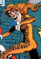 (Hawk & Dove III #22 (BTS), 23) - Velvet Tiger made a name for herself assassinating members of the Tommy Shoe and Jimmy Tieng crime families, and forcing the remaining gangsters to work for her. She observed a fight between hawk and Dove and Sudden Death, and saved the villain from defeat and imprisonment because he seemed like a valuable asset. She made him her bodyguard and he accompanied her in collecting dues from Jimmy Tieng and his gang in Chinatown. On the ride home she saw Hank Hall and Dawn Granger coming home from a night out, and envied both their happiness and their youth. She'd made it to the top like she always wanted, but it cost her her youth. Velvets younger brother Ward planted a bomb in her car, but she escaped. Ward, now known as Hakker had assembled the Cyber-Punks to kill her because she was evil, but she was saved by Hawk and Dove. Tiger escaped, and told Hawk and Dove that they'd inevitably clash.