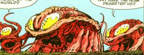 Powers: The Vendaricii were slug like organisms with a number of massive legs, and winding tentacles protruding from their faces.History: (Jack Kirby’s Fourth World #13) - The Vendaricii were sentients of the planet Vendaricar, and they witnessed a Promethean Giant pass through their world. The giant, Prodigian, was accompanied by a mysterious robed stranger, and the New Gods Metron and Desaad. Metron had used his Mobius Chair to bend time and space to grow huge enough to communicate with Prodigian. They all wanted to discuss the events of Genesis that freed all of the Promethean Giants. The Vendaricii started a religion based on the planet sized beings, the Faith of the Four, and elected high priests to observe their cosmic guests. What took moments for the four was millennia for the Vendaricii, and they viewed the strangers as gods that kept their world alive. The four departed, and the Vendaricii feared the end of the world. After a harrowing few days, they realized their “gods’” disappearance did not herald the end of the world, and they got on with their lives.