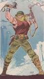 Powers: Viking Commando possessed peak human strength, endurance, and speed and was a fierce combatant. He was armed with the steel battleaxe Iron Fang as well as guns and grenades.History: A group of Huns raided Valoric's Scandinavian village, carrying of their king. Valoric and his men bravely defended the village, but were cut down one by one. Valkyries carried off the dead, but Valoric was only mortally wounded, and when the valkyrie Fey tried to take him to Valhalla he was not able to make it, instead falling through a time warp to the 1940s. Valoric saw a German brigade, and attacked them. The U.S. army was impressed by his courage and savagery in battle, and he was recruited as a soldier, being given the name Viking Commando, even though his tribe was actually ancestral to the Vikings. The Commando made a huge impact in the war, but it unknown whether he survived or not.