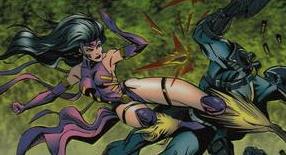 (WildC.A.T.S: Covert Action Teams (Image) #10, 11) - Zealot attempted to give Voodoo combat training, but found her a stubborn student. Zealot reminded her that her fulfilling her potential was important to keeping not only her safe during missions but her WildC.A.T.S teammates as well. A ship fell from the sky in an explosion, and Alabaster Wu, severely injured, tumbled to the ground. His pursuers were Raksha, and Zealot engaged one of them in combat, beheading them. Zealot heard a cry for help and entered the ship. The Rakasha’s body infected Zealot, possessing her, and Alabaster Wu fled, seeking help. Zealot found Miranda Tai aboard the ship, and saved her by fending off a group of Raksha. She was aided by Tai’s protector Huntsman, and she initially distrusted him, but after he disarmed her and handed her her sword back she rethought her position. Wu desperately tried to contact Jacob Marlowe, with little luck, and the infected Voodoo killed innocent bystanders, needing their lifeforce to sustain the Raksha. She contacted the rest of the WildC.A.T.S and convinced them Alabaster Wu was trying to kill Marlowe. Marlowe met with Wu at a Halo construction site, and Wu said he was calling in an old favor. The WildC.A.T.S arrived, warped in by Void, but they were also met by the Triad, who’d been hired by the immortal sorceress Tapestry. The WildC.A.T.S realized Voodoo had betrayed them and engaged in battle with the Triad, who’d learned from their previous encounters, making them much more formidable opponents. Providence and Void fought, with Providence reminding her they were both incarnations of the Orbs of Power, the only difference between them being who they chose to serve. The Triad were victorious, and Tapestry and her lover Soma paid them off, saying their business was concluded. Attica said they couldn’t call their victory complete until Zealot and Grifter, who were missing from the battle, were defeated, so Tapestry agreed to give them a new assignment. Zealot, Huntsman and Miranda Tai rushed to the scene, with Zealot suffering from septic shock due to her injuries she’d suffered during the fight with the Raksha. At the sight of Tapestry Zealot decided they should make a tactical retreat. She contacted Savant, calling in a favor, and in turn Savant got in contact with Soldier and Majestic. Tapestry and Soma kept the WildC.A.T.S in captivity, but Providence refused to leave Void’s side, saying they both served a higher power. Tapestry told her she didn’t understand her own power or what she was a fragment of. She melded Void and Providence together, intending to fuse them into an Orb of Power for her own use. Tapestry probed Jacob Marlowe’s memories and the formation of his WildC.A.T.S. She then changed the past, so that Zealot killed Grifter and Tapestry killed Lord Emp to protect him. She promised him that if he gave himself to her body and soul they would be unstoppable together.