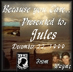 This Tree is for all the POW's that have not returned and will remain on this site until the day that they come home. The lastest Informtion on POW’s and ALAS !! TOLL FREE numbers in regards to POW’s (Thank you Charles for sharing this info..) There were 801 POWs that returned alive from Southeast Asia. 660 of these were service members 65 were civilians 76 were foreign nationals. Of the 801 returning, there were 136 Army, 333 were Air Force, 39 were Marines, and 152 were Navy. 28 personnel escaped, 66 were released, and 566 returned during the Operation Home Coming. The first to be captured by the Viet Cong (VC) on 23 October 1963 were: CAPTAIN HUMBERT R. VERSACE 1LT JAMES N. ROWE and SGT. DANIEL PITZAR. Capt. Versace was reported to have been executed by the VC 25 September 1965 along with Sgt Kenneth Roraback. Neither remains has been repatriated. Capt. Versace did not receive the Medal of Honor, even after being highly recommended. This was a grave misjustice and should be re-looked at, as with others that were held captive in that brutal jungle. Others that were captured and some died should at least receive the Medal of Honor or Distinguished Service Cross.There were about 2,500 US personnel who were classified by the State Department as missing from Southeast Asia after the Operation Homecoming. Most of these service members were written off in the 1980s with a bureaucratic classification of presumptive finding of death -BODY NOT RECOVERED. This I have heard many times over in the past. Another Update - 24 Aug 1999 - Corporal Charles Tillman, Columbia, SC - 9th Infantry Regiment, 2d Infantry Division and Private Herbert Ardis, Detroit, Mich. - 24th Infantry Regiment, 25th Infantry Division were both lost in the confusion in the Korean War and were listed as Missing in Action. This happened in fighting the Chinese Communist forces near the Chongchon River in North Korea. They were recently identified. Since 1996, the remains of 35 have been repatriated from North Korea. In order to keep with the fullest possible accounting of America's missing in action service members, the services have set up the following toll free 800 numbers. If you or you know anyone that could use them, please feel free to provide them with the numbers. I am sure they would appreciate it very much for your loving kindness. Families Can contact the following Numbers for up to- date information on a Missing Service member - -- Army 800-892-2490 Navy 800-443-9298 Air Force 800-531-5501 Marine Corps 800-847-1597 Civilians that were missing - families can contact the State Department - 202-647-6769 From what I have heard - the primary focus of this year's national ceremony will be Secretary of Defense Cohen's dedication of an inscription on the empty Vietnam War crypt at the Tomb of the Unknowns, Arlington National Cemetery. The inscription will read HONORING AND KEEPING FAITH WITH AMERICA'S MISSING SERVICEMEN," with the dates 1958-1975, previously inscribed. For information on this ceremony closest to you, please contact the Defense POW/MIA Office, area code 703, 602-2102, Ext. 111. That is the best I could do. Brig. Gen. Harry B. Axson, Jr., the new commander of the Joint Task Force for Full-Accounting, is now on a trip to Laos for POW/MIA consultations. National POW/MIA Recognition Day is September 17th this year. A lot of concerns were over the identities of the Korean and World War II. I have received a lot of e-mails on this topic. The Central Identification Laboratory also recently stated that it will use DNA technology to identify the Korean War and World War II remains that were previously classified as unknown and buried in national cemeteries. The remains of one US Navy and two US Army personnel, repatriated, respectively, in 1990 from North Vietnam and 1997 from South Vietnam, have been identified and are returning to their families for burial. The remains of two Americans previously listed as missing in Laos have been returned and identified. The remains of Major Charles F. Morley of Warrensburg, MO, and Captain Thomas C. Daffron of Pinckneyville, IL, both US Air Force, were recovered by a US-Lao excavation team in 1995. These two Americans were lost during a night mission over Khammouan Province, Laos, on February 18, 1970. A third American, Army Specialist 4th Class Roger L. Smith of South Point, Ohio, has also been accounted for. The remains of Specialist Smith, listed as missing in North Vietnam on October 3, 1968, were recovered in October & November of 1994. You may have heard the controversy over the funeral policies. They have been going through this ordeal for a long time now. Well, new Funeral policies are now being considered by the Department of Defense (DOD). They have sent a set of proposals to Congress that will improve the way funeral honors are being conducted now. If approved by Congress, the services will all be required to provide specific funeral honors for any veteran who has served honorably in the Armed Forces by the next of kin. If approved, it will become effective on 1 January 2000. DOD plans to have an 800 toll free number for the funeral requests, and a Web site to explain the benefits. (Jules, I hope all this did not bother you too much with so much information, but I had to share it with the people that really care. It is the latest information that I could get. You have a wonderful site . I came by last week for a spell. I changed my site around a little and added a few others. Thank You and God Bless You, Charles) Pray for POW/MIA's still being held captive in South- east Asia. YES...there are still living POW/MIA's... Don't believe?? Go to these sites, and read the sad accounts. Just click on red-white & blue button. Thank you. Col. Ted Guy, Senior Ex-POW U.S.A.F.(Returned 1973 Died 1999): Col Gordon "Swede" Larson, Ex-POW (Returned 1973): CW4 (Ret) Frank Anton, Ex-POW (Returned 1973): We must remember the women that were POWs also On December 9, 1941, two days a