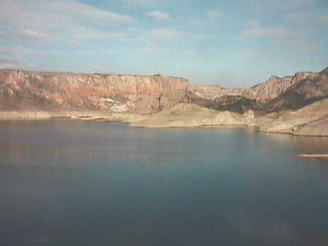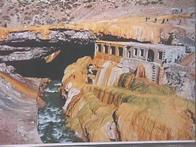 Men heeft een vijftal stuwmeren aangelegd, dus door de Cañon stroomt nu nog maar een klein riviertje. Vroeger stroomde hier echt een enorme rivier, getuige de erosie aan de oevers. Na de eerste dam zien we hoe de rivier vroeger de rotsen heeft geslepen. We zien nu een prachtig meer in een maanlandschap, en een prachtige canyon maar helaas stopt de chauffeur veel te laat. En op een hoger punt is het meer prachtig om te zien, maar de canyon zien we dus niet meer. Daarna zien we prachtig verkleurde rotsen, die hun mooie kleuren hebben te danken aan de verschillende mineralen die zich hier in het gesteente bevinden. Ook zien we gestort betonafval, maar Oskar vertelt dat het beton ontstaan is door de natuur zelf. Zo passeren we nog enkele dammen, met daarachter prachtig groene stuwmeren. De laatste dam keert een hoogte van 75 meter water, en daarachter bevindt zich een enorm groot meer. We gaan eten in het dorpje El Nihuil, en het meer heeft ook dezelfde naam als het dorpje. We nemen een menu voor 10$ per persoon, en krijgen eerst aardappelsalade, empanadas, schnitzel met friet en salade, en als toetje krijgen we flan. Ik neem een biertje erbij, en Regine vraagt om water zonder koolzuur. Ze krijgt echter kraanwater uit de fles, dus vraag ik om een nieuwe fles, en nu met koolzuur. Ja, het echte water smaakt toch vele malen lekkerder dan het kraanwater hier. Daarna rijden we over de dam naar de andere kant van het meer waar we even stoppen. We bekijken de dam en maken wat foto’s en daarna gaan we op de weg terug naar Mendoza. We houden nu een kort slaapje in de bus waarna we tegen dat het donker wordt, weer een paar potjes kaarten. We zetten bij terugkomst eerst het bruidspaartje af bij een enorm hotel aan de buitenkant van de stad, daarna de twee andere paartjes en wij worden als laatsten afgezet bij ons hotel. We worden ditmaal voor de deur afgezet en gaan ons hotel weer naar binnen. We hebben onze rugzakken en tassen in het hotel in een lege kamer gezet, om onze hotelkamer vrij te maken voor anderen. Er is echter niemand bij gekomen, dus mogen wij van de hoteleigenaar ons nog even wassen in onze eigen badkamer. We kunnen ons zo nog even verfrissen, voor we straks met de bus op pad gaan naar Cordoba. Dan gaan we op de stoelen zitten in de hal, en kunnen mooi even wat praten met de hoteleigenaar, Carlos Raul. Hij regelt voor ons een taxi naar het busstation, waar we per bus in ligstoelen zullen vertrekken. Tegen 23.00 uur stappen we in de bus, en hij vertrekt op tijd. Binnen drie kwartier is Regine al vertrokken naar dromenland.