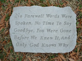 ![]() | #507 Farewell Stone No Farewell Words Were Spoken No Time To Say Goodbye You Were Gone Before We Knew It And Only God Knows Why |