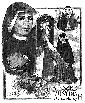 Faustina was born in Helena Kowegra in the village of Glogowiee on Poland on August 25, 1905. She was the third of ten children. When she was 20 she recieved the name Sister Maria Faustina. In the 1930`s she recieved a message from the Lord and was told to spread it throughout the world. She was asked to become the apostle and secretary of God`s mercy. Her entire life was in imitation of Christ and was to be a sacrifice- a life lived for others. In her daily life she was to become doer of mercy by bringing joy and mercy. She was to encourage others to trust in him and thus prepare the world for his coming again. For four years she recorded divine relations and mystical experiences together with her own thoughts, insights, and prayer.