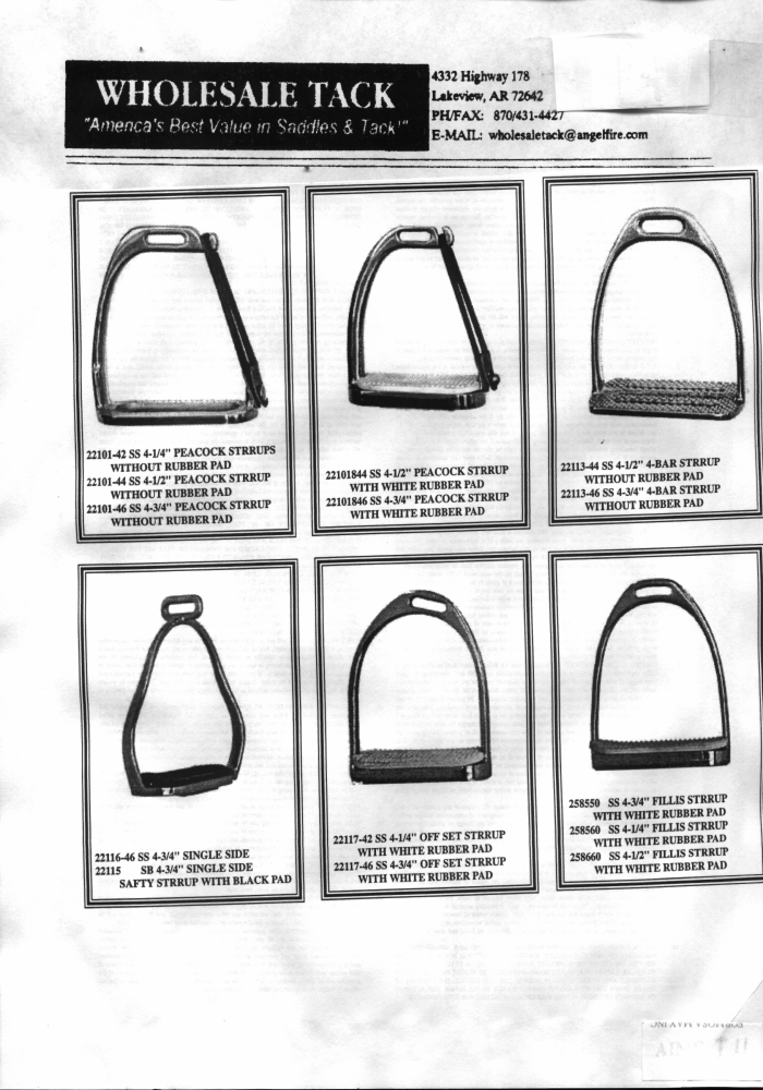 Please e-mail us for any inquiries on prices of the following Stirrups.
