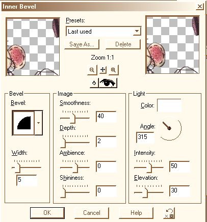 16. Go to Effects>3D Effects>Inner Bevel Setting: