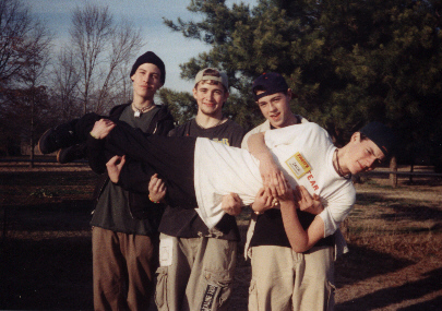ITE, my band, from Jacksonville/Conway. Kelly's to the left, Scott's at the right, and I'm the middle one with my hand right by Zach's crotch.