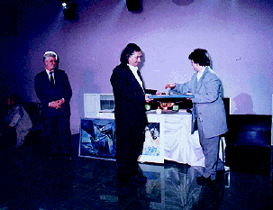 The culture newspaper Art forum celebrated by a style hard party its first anniversary on December, 11th, 1999 in Konstantin Kisimov Theater's Art cafe. The program was guided by Jambol artist-photographer Alexander Borissov and his wife - the poetess Tonia Borisova. The rich concert program that was performed included musical and dance greetings of the Napredak-1869 Community Centre's creative team, singer and actress Plamenna Nenova, as well as greetings from many country towns, where the newspaper is distributed. The Art forum's manager Valentina Pancheva delivered plackets and awards for quality publications in the newspaper to: Vladimir Shumelov, Bisera Djivoderova, Yanislav Yankov, Panaiot Dimitrov - Ponkata, Zdravko Kisiov, Ph. Dr. Radoslav Radev, Nadia Koseva, Borislav Gurdev, Dian Vasilev. The Theaterer's director Sava Dimitrov received a canvas (oil) as a party's host. Some municipality and regional culturetregers also take a part in the occasion. Top |